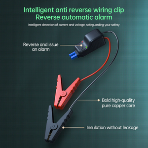 The heavy-duty jumper system provides reliable starting power for most 12V vehicles including cars, SUVs, pickup trucks, and small commercial vehicles. Smart safety clamps include reverse-polarity detection with automatic alarm protection.