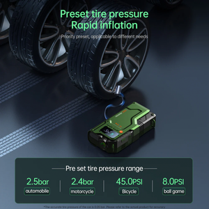 The cordless air compressor features a full-screen digital display that shows real-time tire pressure and remaining battery level. Preset inflation modes allow fast and accurate inflation for:
